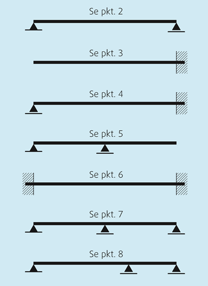 HE-B: normale, bredflensede H - bjelker. De dimensjonerende bjelkekapasitetene som er oppgitt. Det er også angitt hvilken belastning som gir.